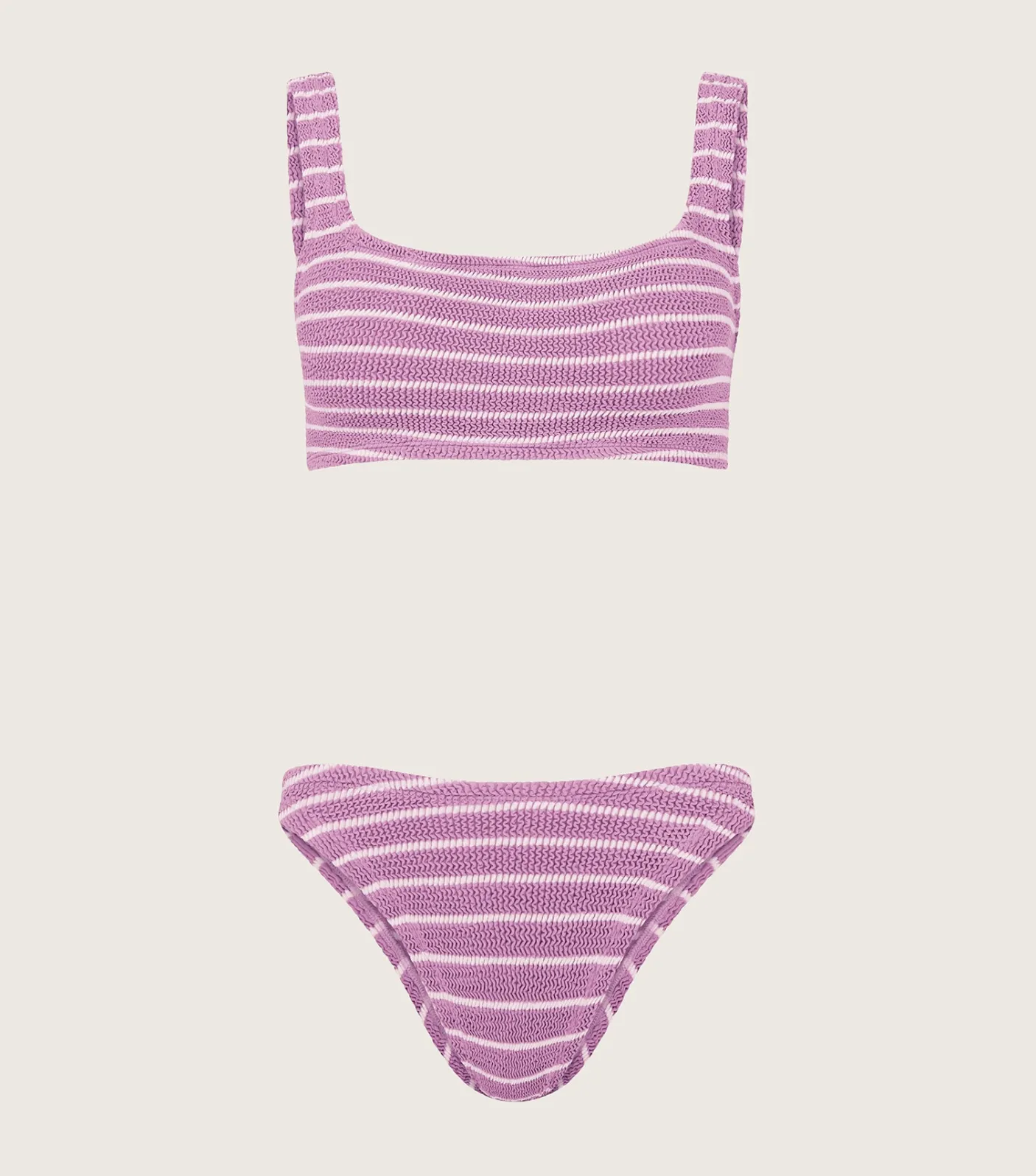 Hunza G Bikini Sets|Bralette- X Helena Christensen Xandra Stripe Bikini – Lavender/White