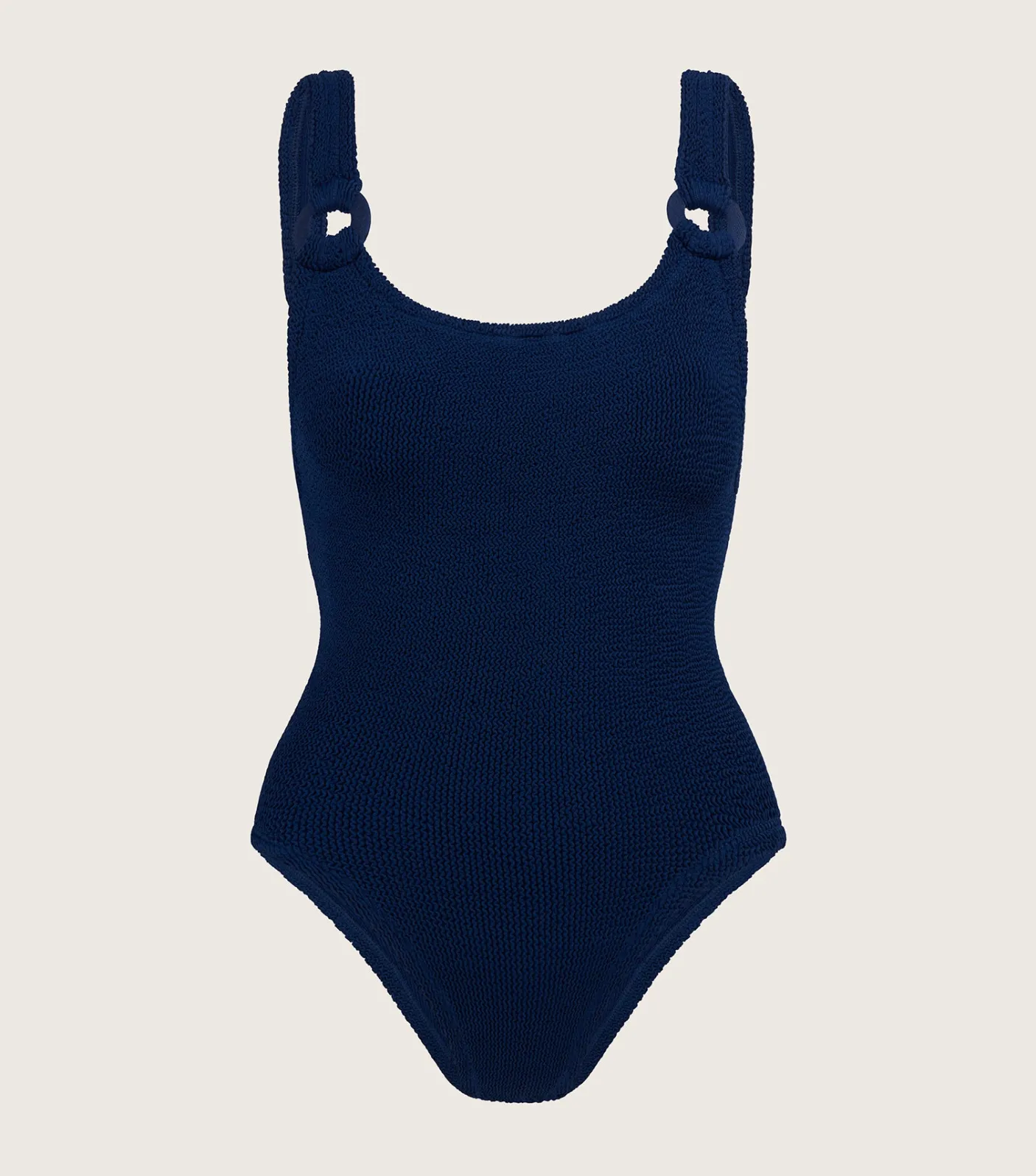 Hunza G Scoop Neck-Domino Swim With Tonal Hoops – Navy