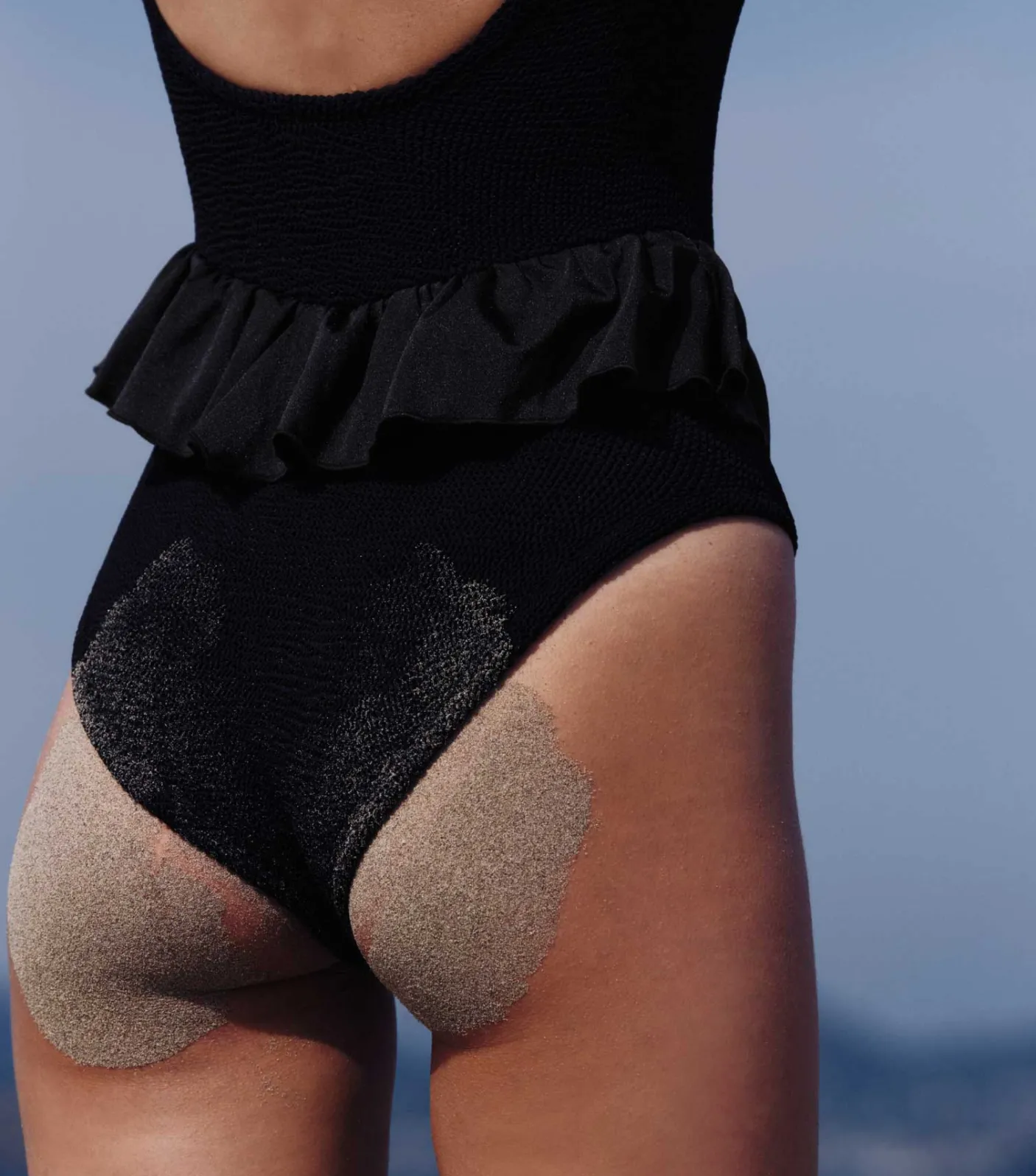 Ruffles please. Add some whimsy to your swimwear arsenal with the Denise swimsuit’s peplum frills – brought back from the Hunza G archives.