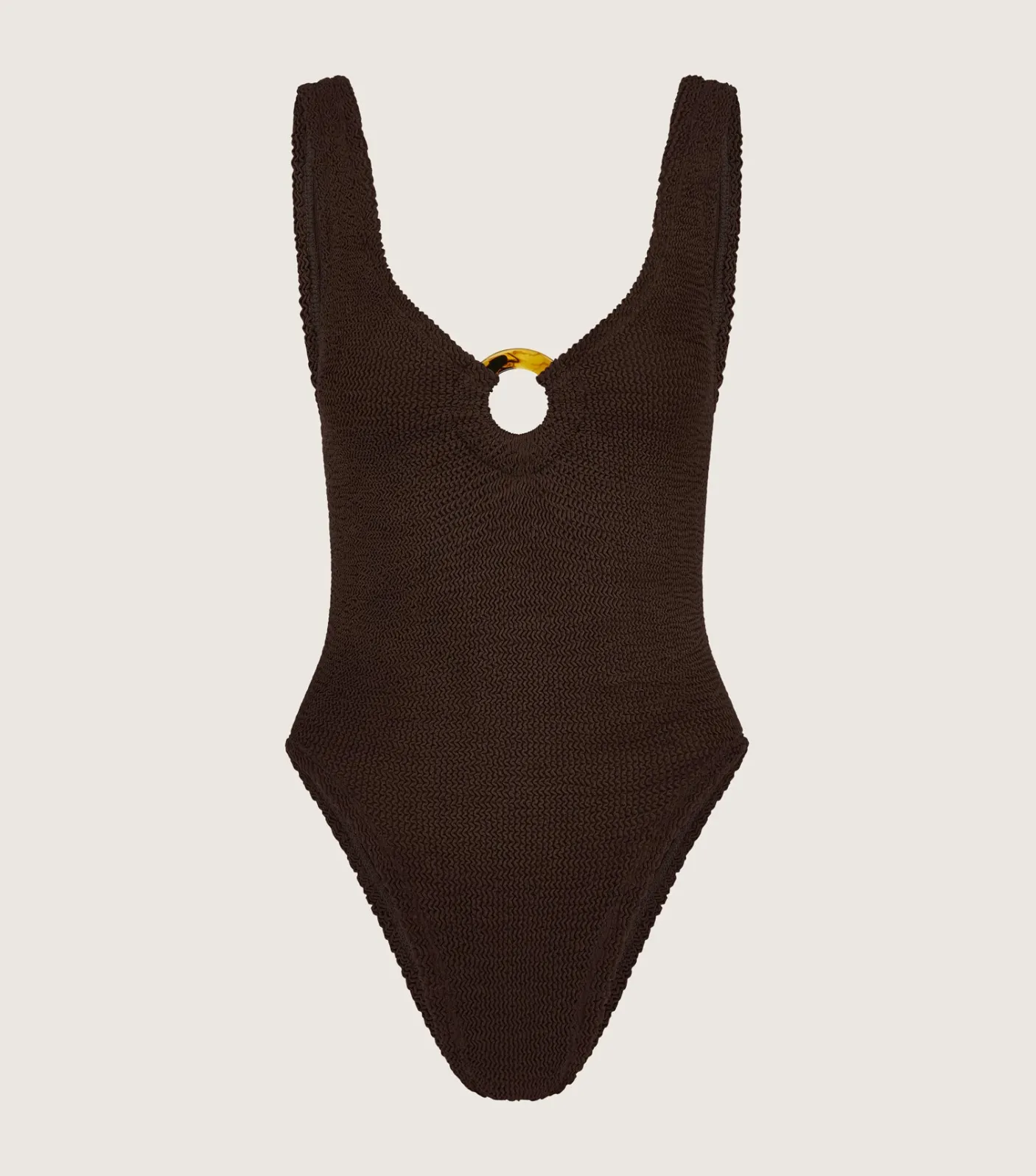 Modern swimsuit, timeless appeal. With tortoiseshell hoop detailing and a deep-v neckline, Celine has understated glamour down.